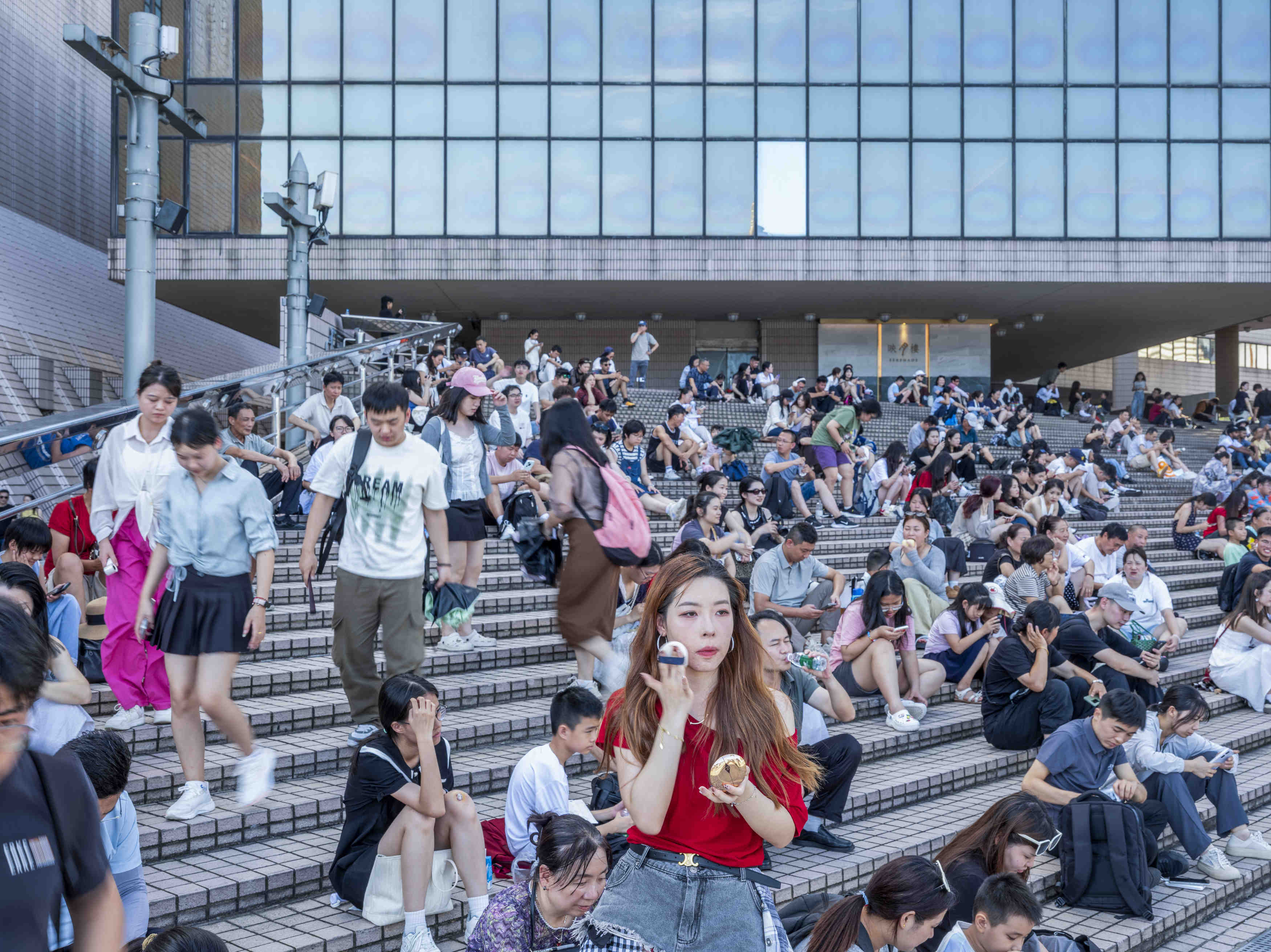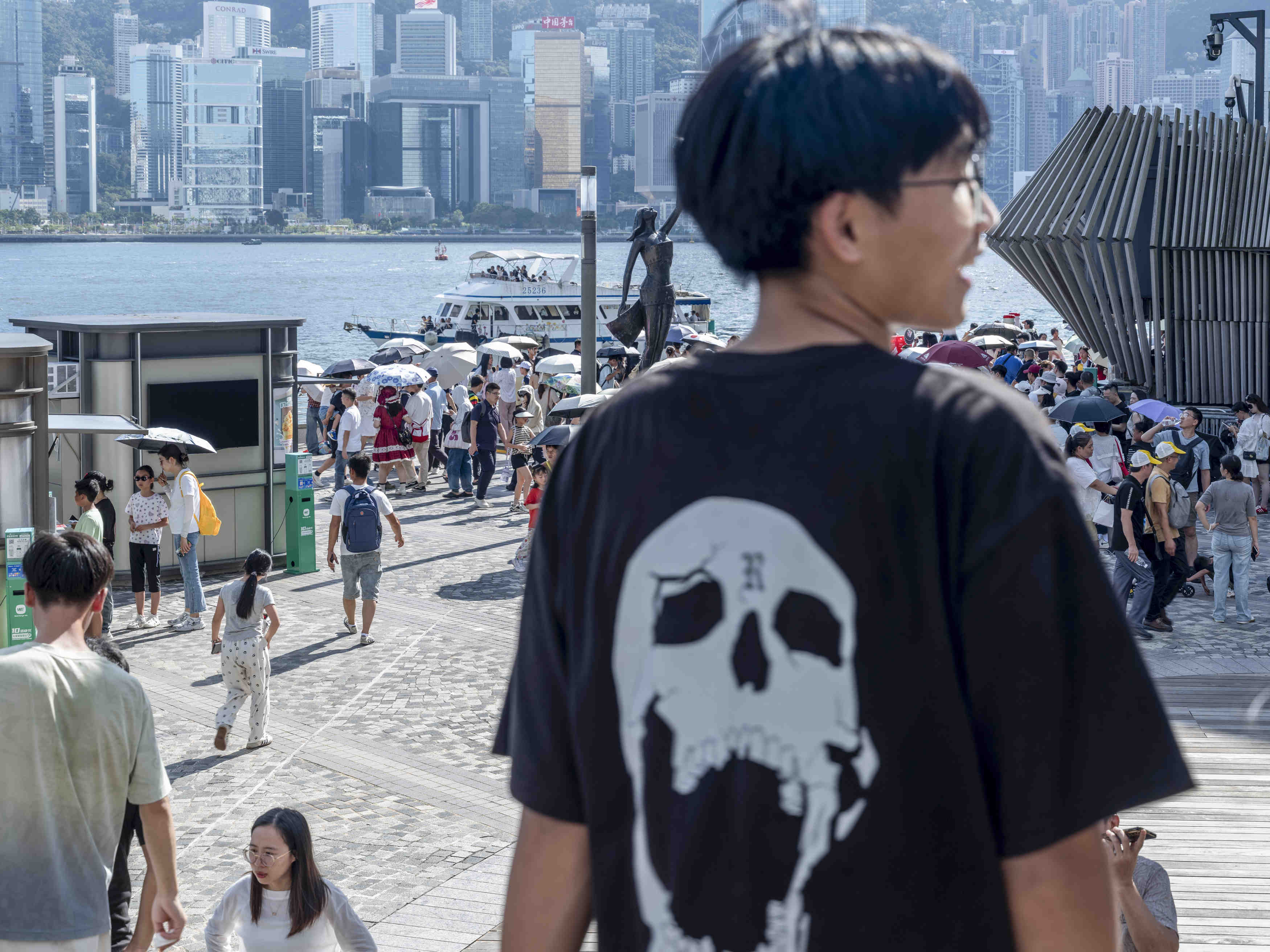 这一年国庆黄金周,除了鲜明的红衣红旗,摄影师也拍到香港各区的游客不约而同戴上一副黑超(墨镜)。香港的夏天愈来愈长,秋冬变得短暂,来到十月黄金周的最后一天,天文台发出了酷热天气警告。